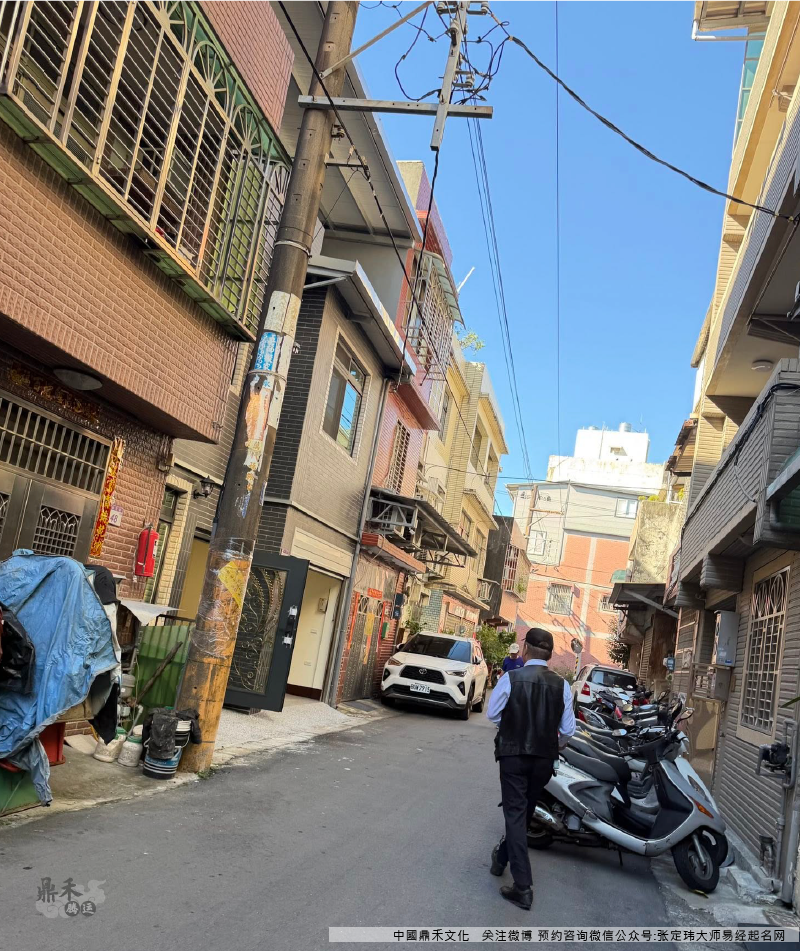 一来到这里,他们门口有一只好大只的电线杆,这个是很明显的白虎抬头,白虎抬头代表他的房子的右侧有一个很长的突出物,代表女人要当家~