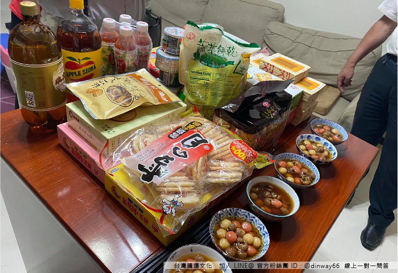 準備自己要吃的東西、簡單就可以了、如雞腿便當、飲料、糖果、餅乾、水果都可以