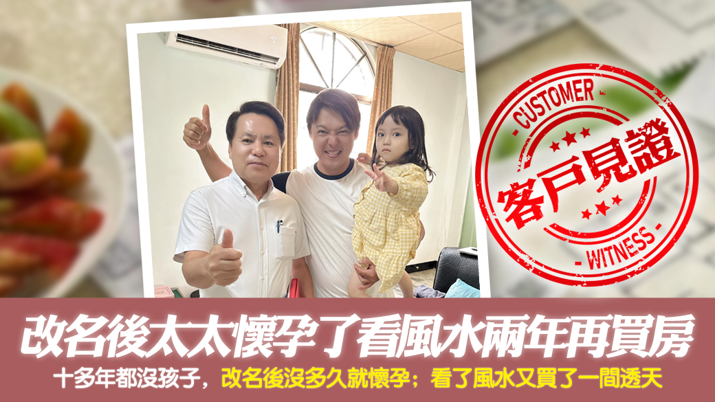 今天他也分享,他跟老婆結婚10多年都沒有生孩子,後來老婆看了我們的節目之後,夫妻兩個一起來服務處改名,沒想到改完名字之後沒多久就懷孕了有這個小寶寶了。後來也找我們看了住家的風水,沒想到實在是旺翻天啦,才兩年的時間又買了一間透天,人家的存款將近千萬呢😄😄